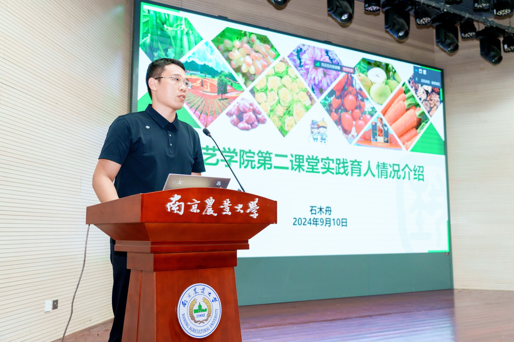 石木舟向新生介绍了学院第二课堂实践育人情况,展示了学院从十大行动层面将为党育人、为国育才的初心使命贯穿学生成长成才的全过程。他还重点介绍了学院通过一学科一竞赛、一专业一社团等丰富的第二课堂活动提升学生五育并举、全面发展的典型案例。