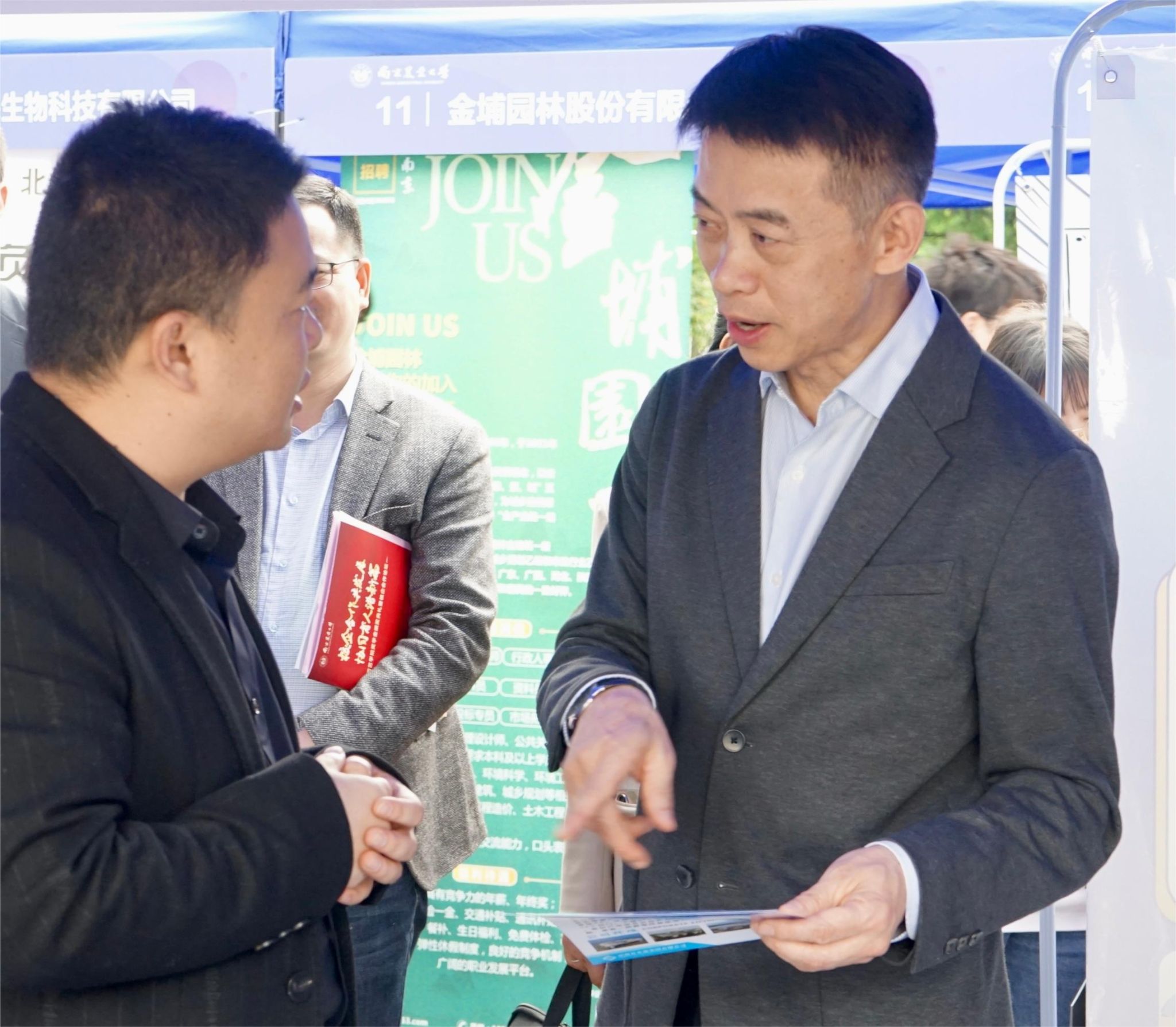王春春在现场与企业高管进行深入交流,细致了解用人单位的招聘需求,共同探讨了人才培养、科学研究、产教融合、社会服务等方面协同合作的可能性。同时,他也与前来求职的园艺学子亲切交流,勉励他们不忘“强农有为,强国有我”的使命担当,利用专业所学矢志实现“园艺让生活更美好,让老百姓生活更幸福”的美好愿景。