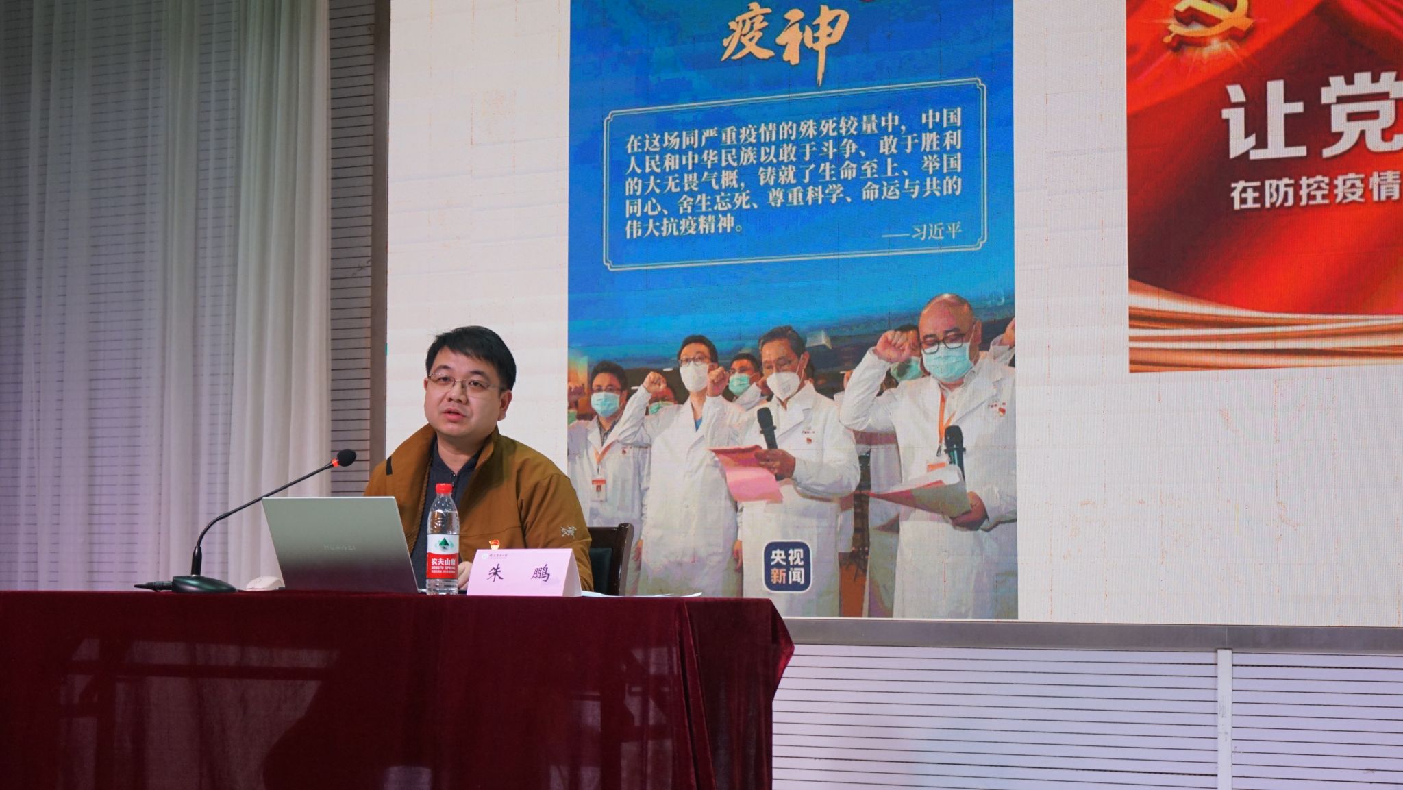 讲座伊始,朱鹏引出三个问题:为什么要加入中国共产党?怎样的青春无愧于党旗?怎样才能成为一位合格的共产党员?接着,他通过列举志愿军战士宋阿毛的绝笔诗和16岁烈士袁咨桐的事迹,阐述了中国共产党始终以“为中国人民谋幸福,为中华民族谋复兴”的初心使命,同时,这也是对“为什么要加入中国共产党”这一重要问题铿锵有力的回答。随后,他回顾了不同时代的青年党员榜样,展示了一代代有志青年前赴后继而创建的伟业,使同学们愈发感悟奋斗的青春才无愧于党。最后,朱鹏围绕“怎样才能成为一位合格的共产党员”对同学们提出了殷切期望,希望同学们不辜负人生际遇、时代使命和历史重托,努力做有理想、有本领、有担当的时代新人。