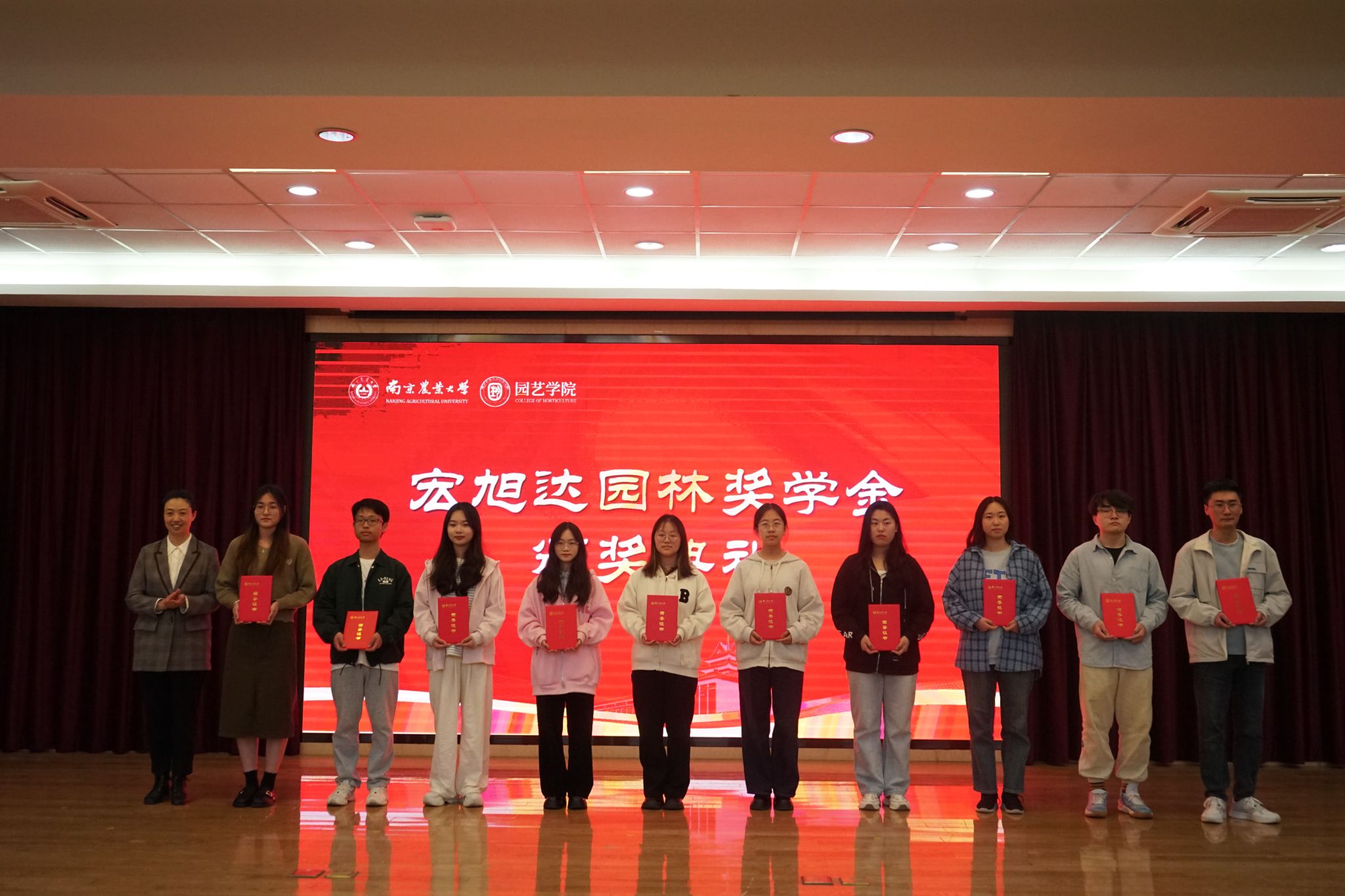 企业及教师代表为获百绿园林奖学金、坂田种苗企业奖学金、章镇奖学金、厚德(于超项目)奖学金、宏旭达园林奖学金、凝心聚力学业奖学金、梦起南源创新创业奖学金的53名学生颁发获奖证书。