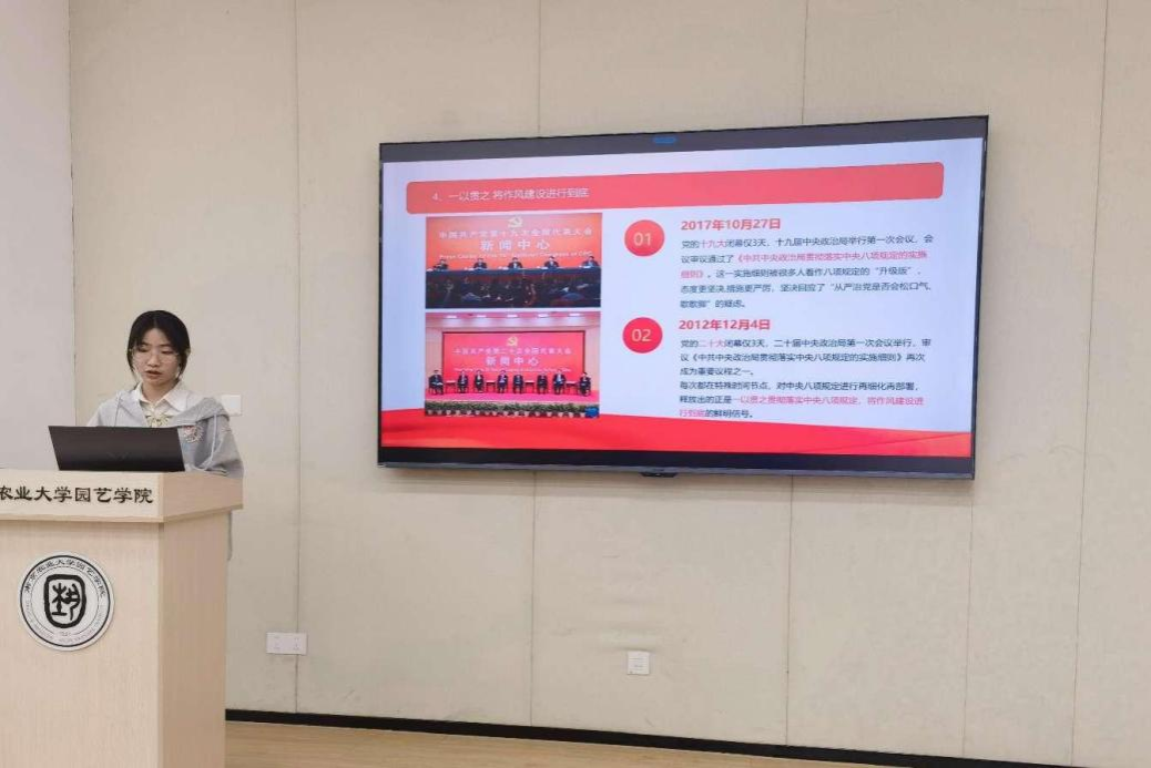 会上还开展了积极分子微党课讲述活动。2023级积极分子袁欣玥同学为大家进行了《中央八项规定精神相关制度规定》的微党课讲述,为大家整理讲解自党的十八大以来,党中央制定的一系列改进作风的制度规定
