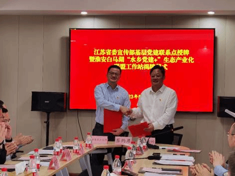 为深入学习贯彻习近平新时代中国特色社会主义思想,坚持以人民为中心,积极践行“青山绿水就是金山银山”发展理念,5月18日淮安白马湖“水乡党建+”生态产业化联盟工作站正式揭牌,活动在江苏省委宣传部基层党建联系点淮安金湖县前锋镇白马湖村举行。江苏省委宣传部二级巡视员、机关党委专职副书记刘海泉,江苏省新闻出版学校党委书记、校长张新昌,淮安市委宣传部副部长赵志鹏,组织部副部长赵进,金湖县委常委、政法委书记张荣平及淮安市、金湖县相关部门领导出席联盟成立仪式。成人有声小说