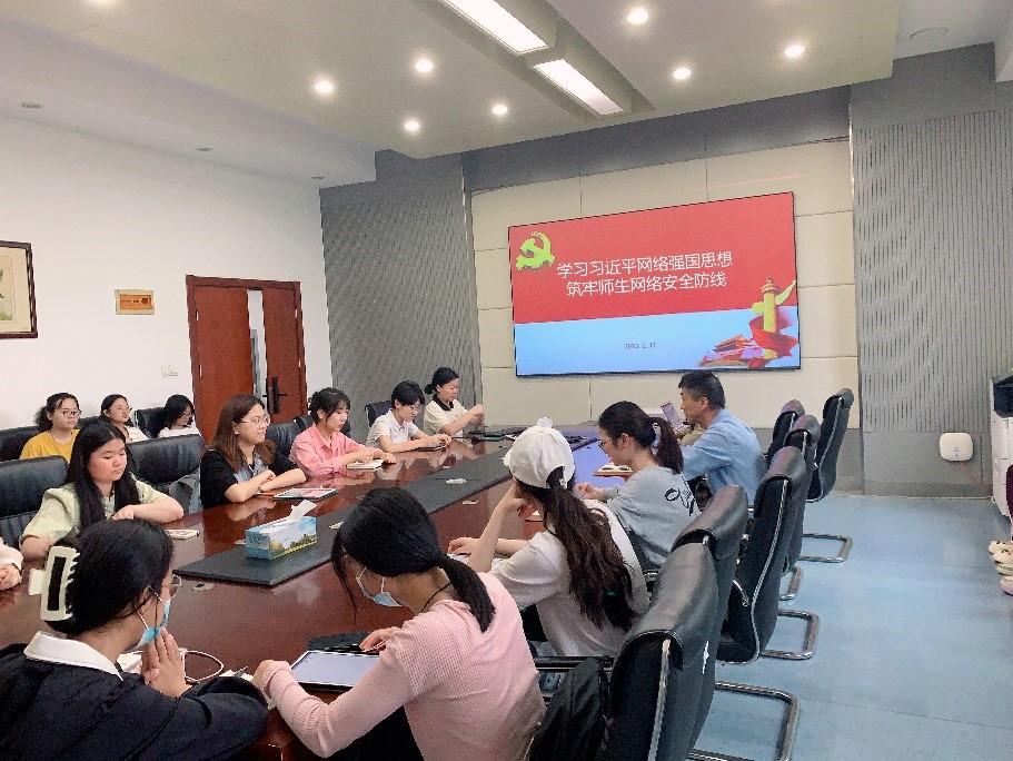 “没有网络安全就没有国家安全。”查贵庭系统介绍了习近平总书记关于网络强国的重要思想,围绕“网络安全法律法规、学校网络安全现状、常见网络安全问题”三个方面,结合实际案例为支部党员讲解网络安全知识,引导学生树立网络强国意识,加深对网络安全的认识,做好个人网络安全防护,和学校共同筑牢网络安全防线。