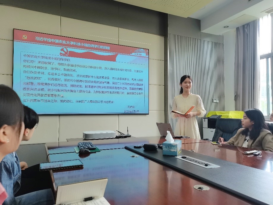 支部书记李柯就学院党委召开的主题教育动员大会会议精神以及所作部署进行传达。随后,支部党员认真学习习近平总书记给中国农业大学科技小院的同学们的回信精神,结合自身学习和生活,开展热烈讨论,厚植爱农情怀,深化专业思想,进一步坚定理想信念,做好学业和职业规划。