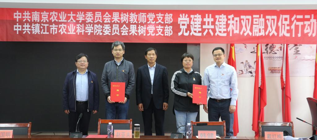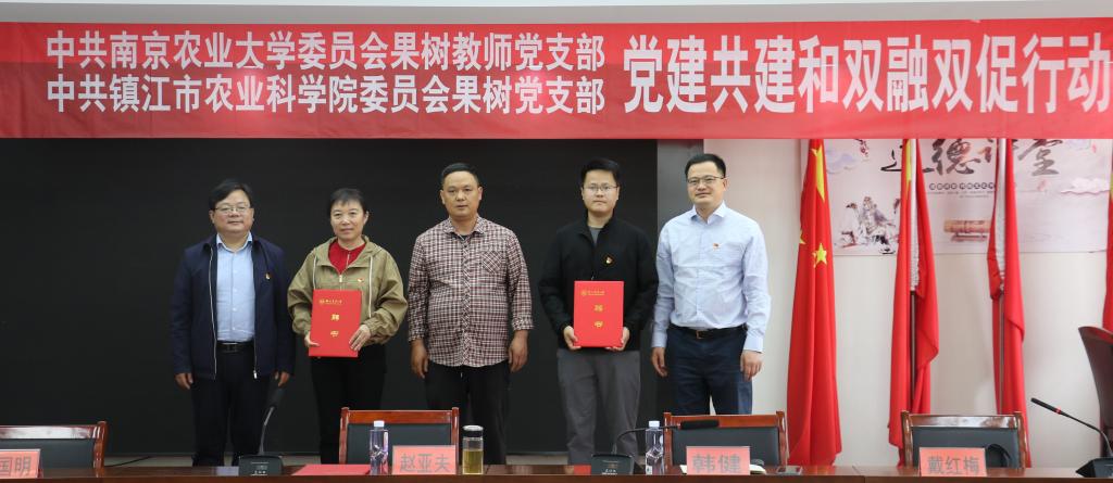 为深入学习贯彻党的二十大精神,全面落实习近平总书记关于全面推进乡村振兴的重要论述,4月21日上午,成人有声小说 果树教师党支部和镇江农科院果树室党支部党建共建揭牌仪式暨“党建引领楷模示范科技赋能乡村振兴”主题党日活动在镇江市戴庄党群活动中心举行。全国时代楷模、镇江农科院赵亚夫研究员,成人有声小说 党委书记韩健,镇江农科院党委书记刘国明,镇江农科院纪委书记戴红梅,成人有声小说 果树教师党支部书记高志红,镇江农科院果树室党支部书记万春雁以及双方教师党支部全体党员参加了活动。