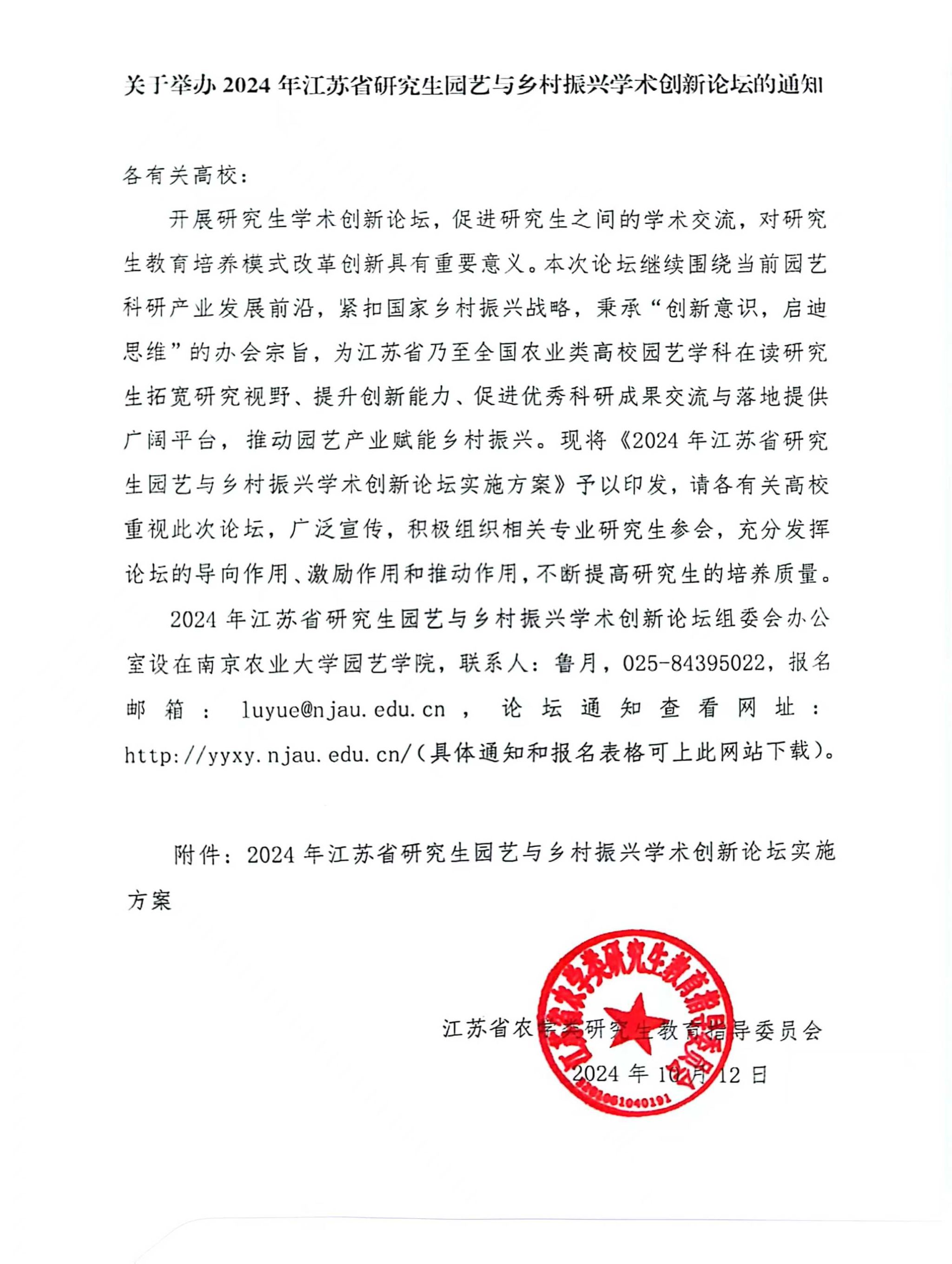 2024年江苏省研究生园艺与乡村振兴学术创新论坛由江苏省农学类研究生教育指导委员会主办,成人有声小说