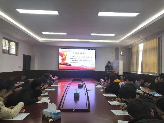 第二部分,入党积极分子张明亮同学进行微党课分享,1921年中国共产党的诞生掀开了中国历史新篇章,2021年是中国共产党成立100周年,张明亮同学和大家一起重温了上海、井冈山、延安等众多红色地标建筑并分享两会心得,张明亮同学讲到:一座座红色地标是一部中国共产党发展壮大的奋斗史,动荡年代,共产党带领我们独立自主,和平年代,共产党带领我们繁荣富强,2021年两会宣布中国取得举世瞩目的成绩,离不开中国共产党的正确领带和全国人民艰苦奋斗。我们在红色地标中致敬历史,在精神谱系里接受洗礼,学习两会精神,不忘初心跟党走,在新时代谱写壮丽诗歌。