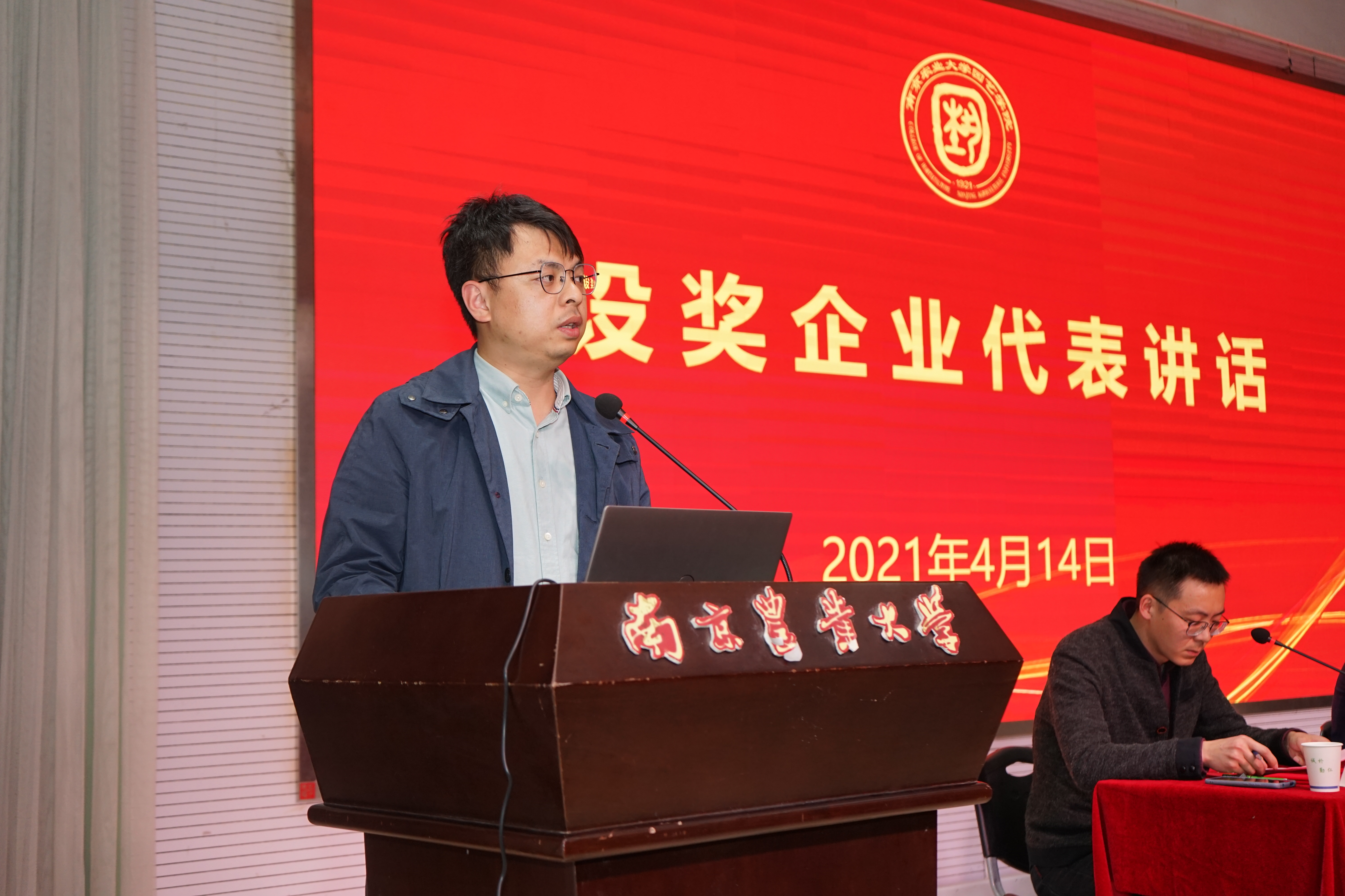 张永辉、黄晨作为设奖企业代表讲话,张永辉首先介绍了金埔园林股份有限公司基本情况,并指出企业的竞争优势,即人才优势、运营模式和技术优势;黄晨介绍了棕榈生态城镇发展股份有限公司的基本情况,并就企业文化进行了详细介绍。张永辉、黄晨还就个人在南农学习、生活向与会同学进行了分享。