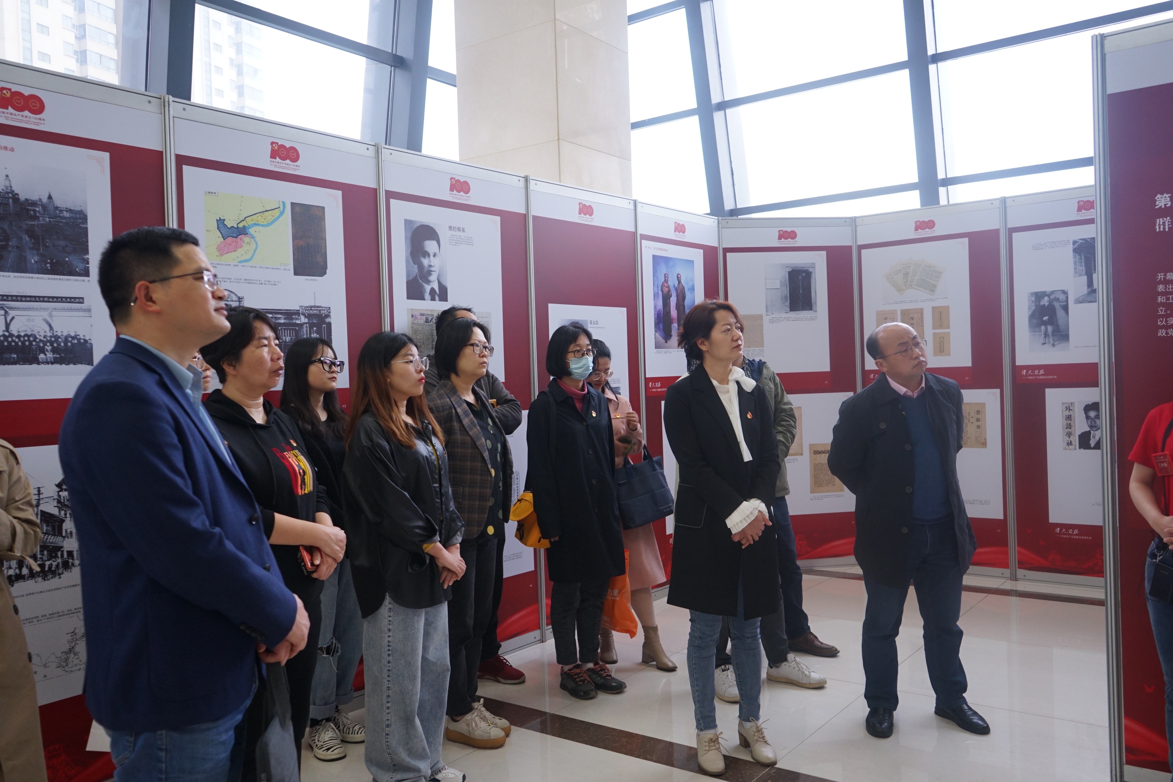 图片展分为党史厅和校史厅两大主题展厅,而党史展厅又从“前仆后继,救亡图存”、“风云际会,相约建党”和“群英汇聚,开天辟地”三个篇章出发,系统、全面地介绍了中国共产党的创建历史和建党精神,展示了中国共产党走过的峥嵘岁月和奋斗历程。展览以图文并茂的形式浓缩了旧中国遭受列强侵略、压迫的那段屈辱岁月,展现了中国共产党由小到大、由弱到强,团结和带领全国人民前赴后继、艰苦奋斗,建立新中国的伟大历程。党员们细细聆听讲解员生动的现场讲解,认真观看每一块展板,在一幅幅珍贵的历史图片前驻足,感悟中国共产党始终不渝为人民的初心宗旨,深刻领会了习近平总书记“学习国史党史是必修课”的重要内涵,增强了对党、对人民、对社会主义道路的信仰。