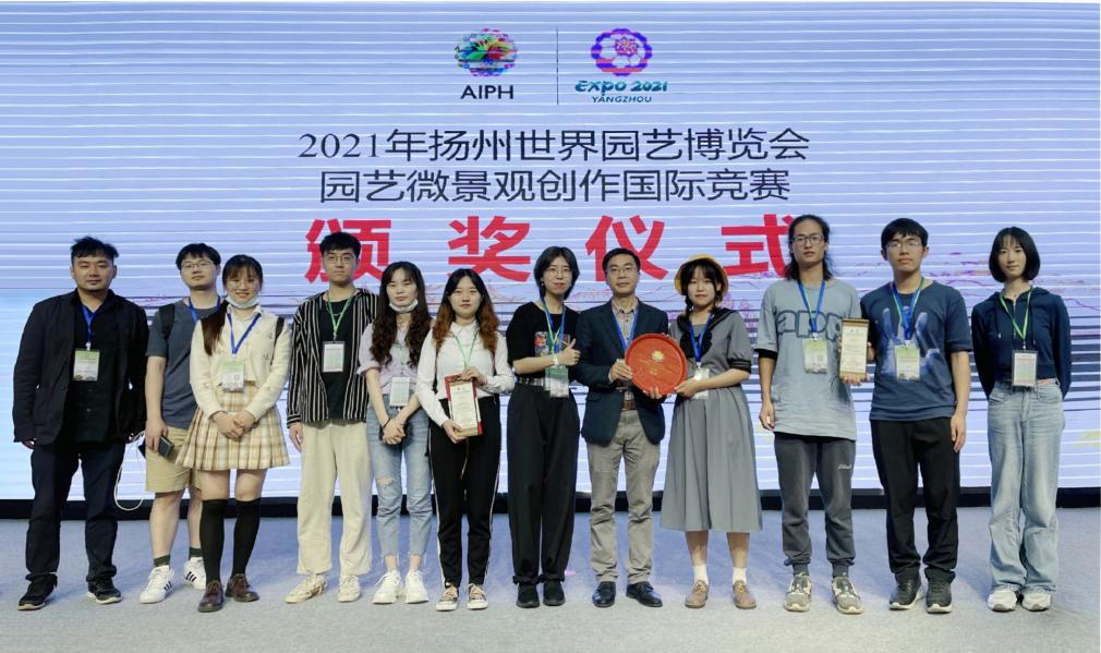 师生团队作品在来自15省31所高校的158件作品中脱颖而出,共2项作品入围决赛,取得了大奖(特等奖)1项,铜奖1项的好成绩,另有5项作品获得本次比赛的优秀奖。本次比赛由2021年扬州世园会国际竞赛组织委员会、教育部高等学校建筑类专业教学指导委员会风景园林专业教学指导分委员会主办。