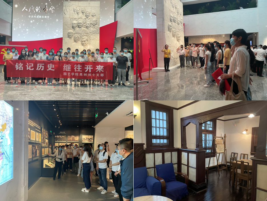 2021年7月2日下午,高志红书记带领果树博士党支部32名同志赴‘梅园新村’纪念馆进行参观学习,支部党员同志重温入党誓词,庆祝中国共产党成立100周年。‘梅园新村’是以周恩来为代表的中共代表团曾经工作和生活的地方,1946年5月至1947年3月间,以周恩来为首的中共代表团进驻梅园新村,与国民党当局就抗日战争结束后国家的前途问题进行谈判。