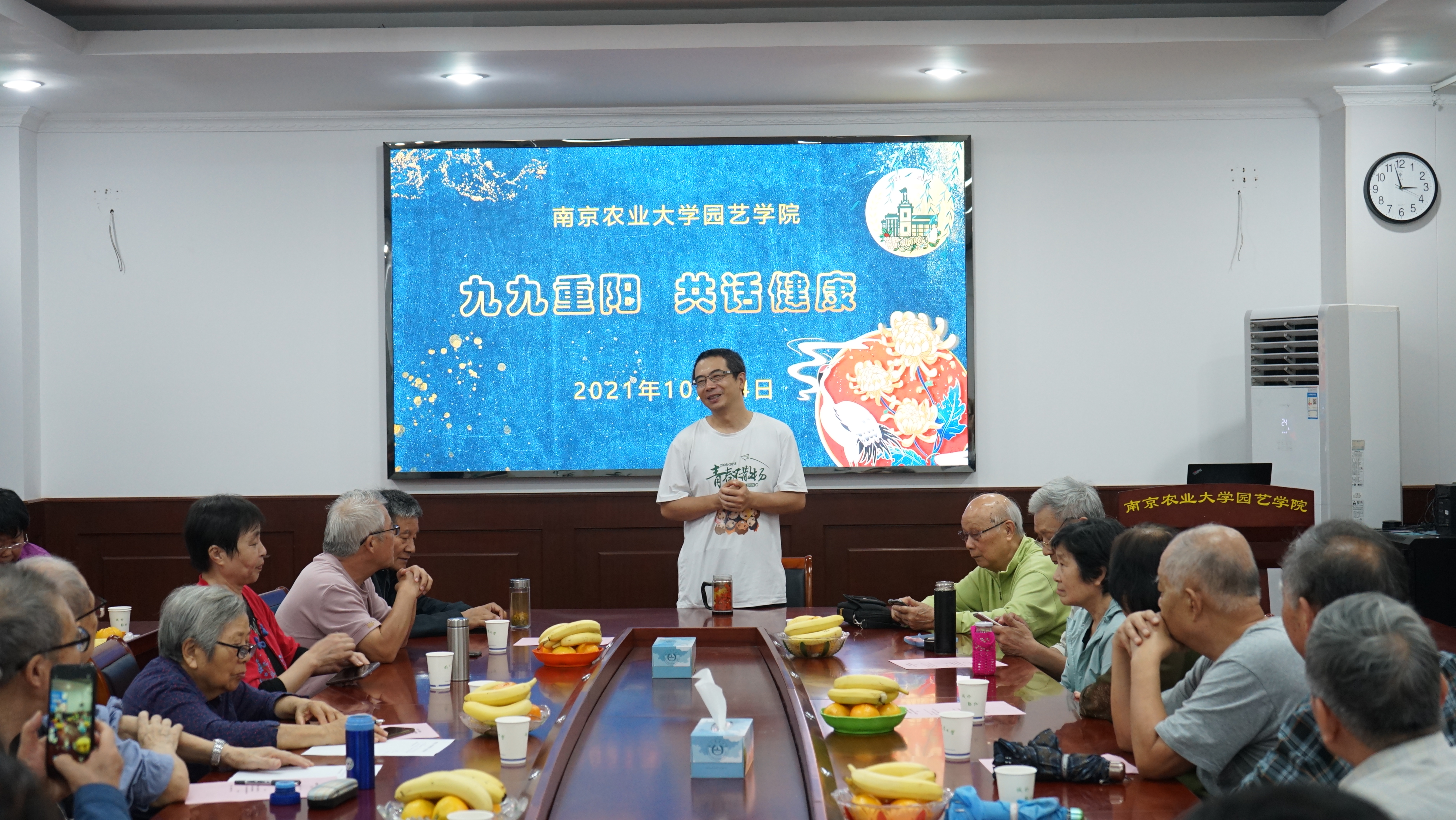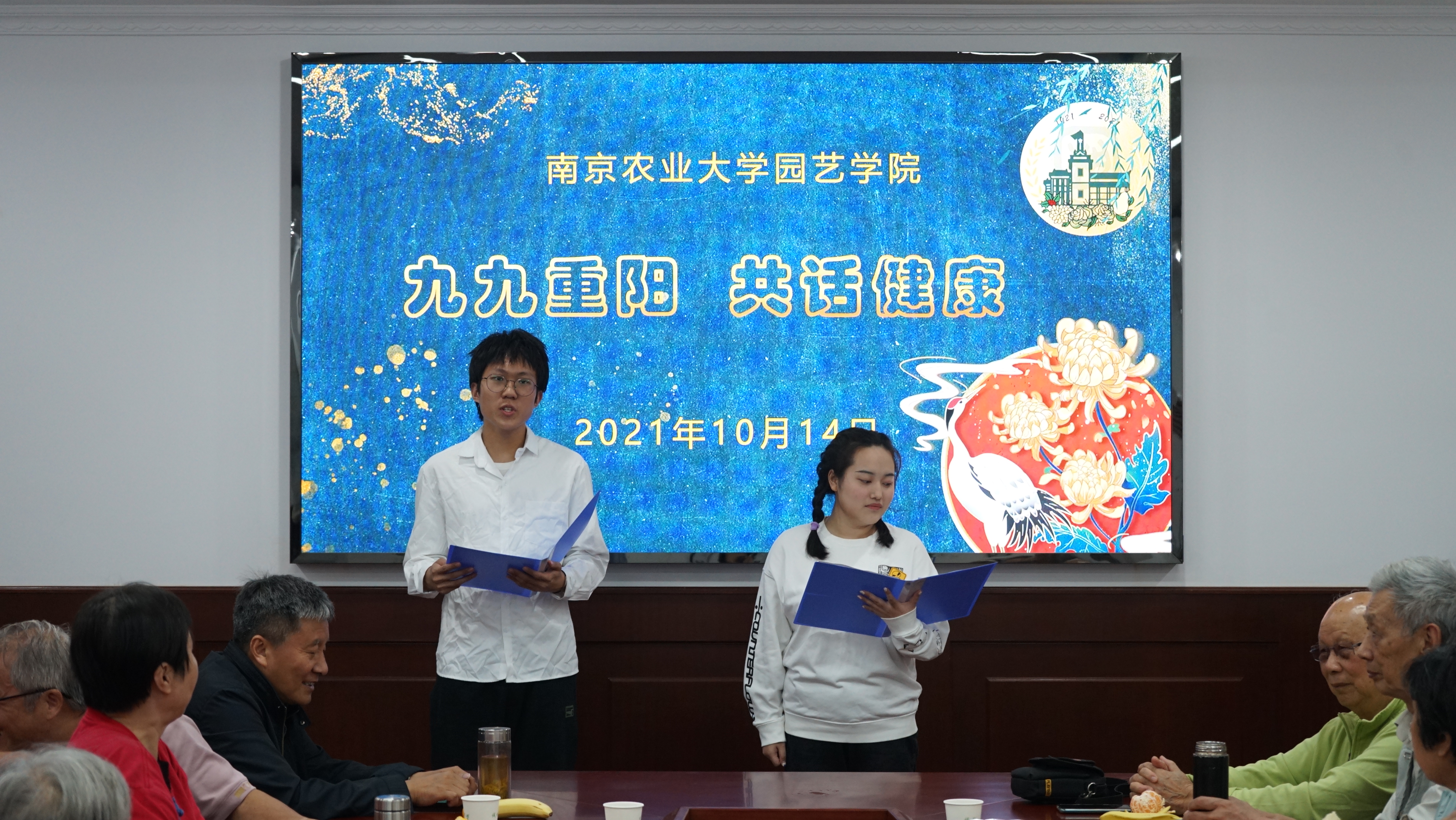 “九九重阳共话健康”是我党委举办的重阳节经典活动,自2013年开始,至今已经连续举办九年,每一年都是以“健康”为主题,围绕学院园艺、园林、中药、茶学、风景园林等专业与退休教师话健康,学生歌舞送祝福等形式,学院领导与退休教师其乐融融共度佳节。