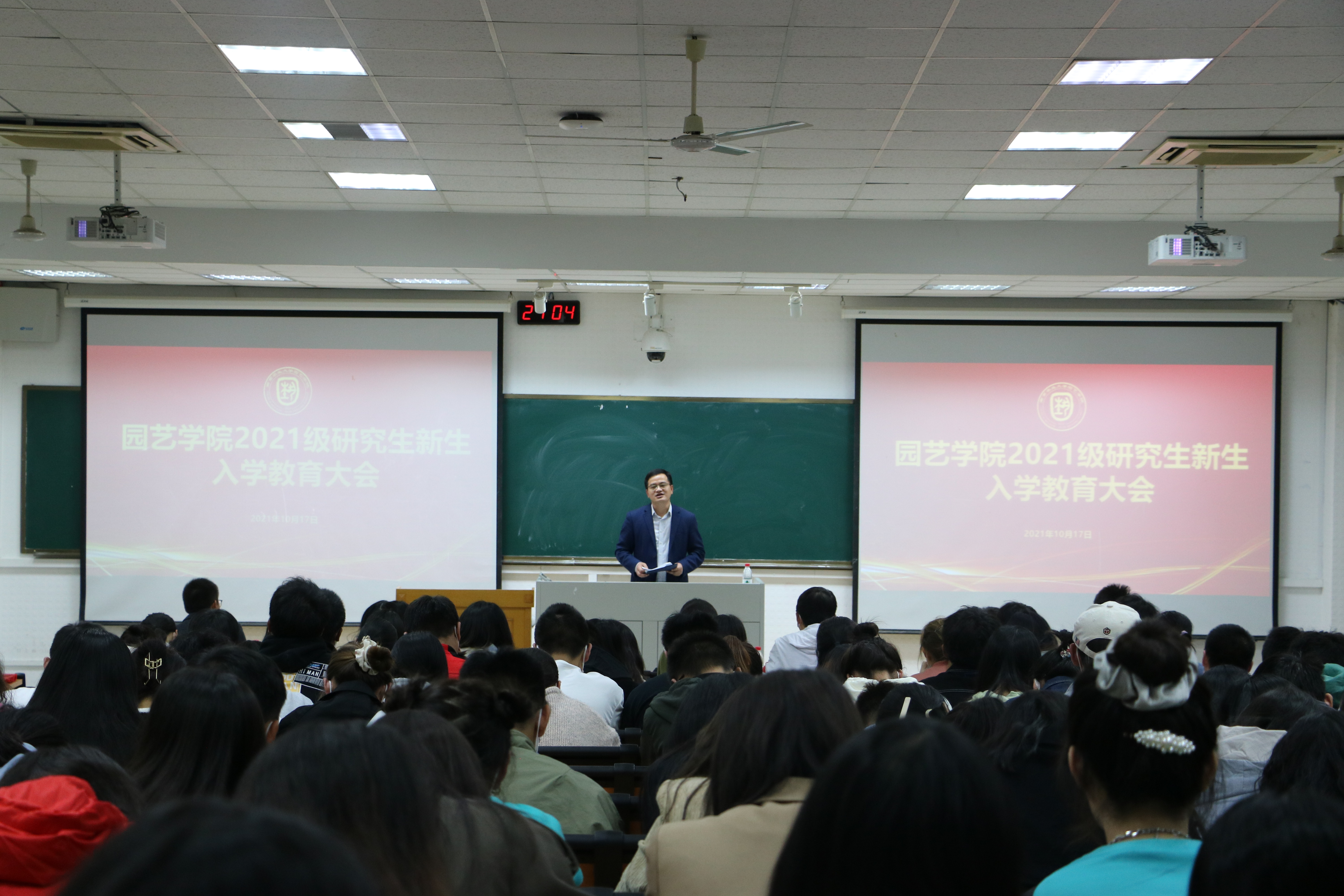 非常宝贵的财富,也是知识创新的重要群体,要珍惜研究生的学习生活,积极探索未知世界。最后,他建议新生们要将个人理想融入社会发展,肩负时代使命,激发科研兴趣,发扬拼搏精神,树立百折不挠的勇气,找到适合自己的目标与定位,成为一名合格的园艺人。