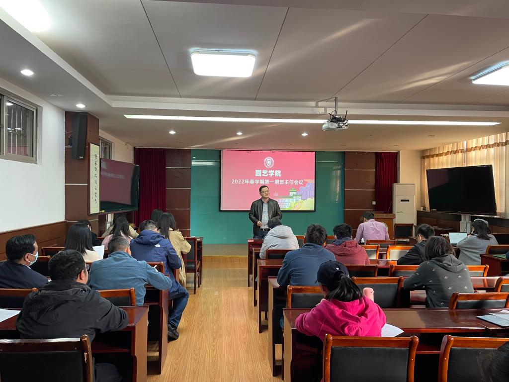 于精艺厅会议室召开2022年春学期班主任工作会议,学院党委书记韩键、副书记文习成,全体班主任及辅导员参会。