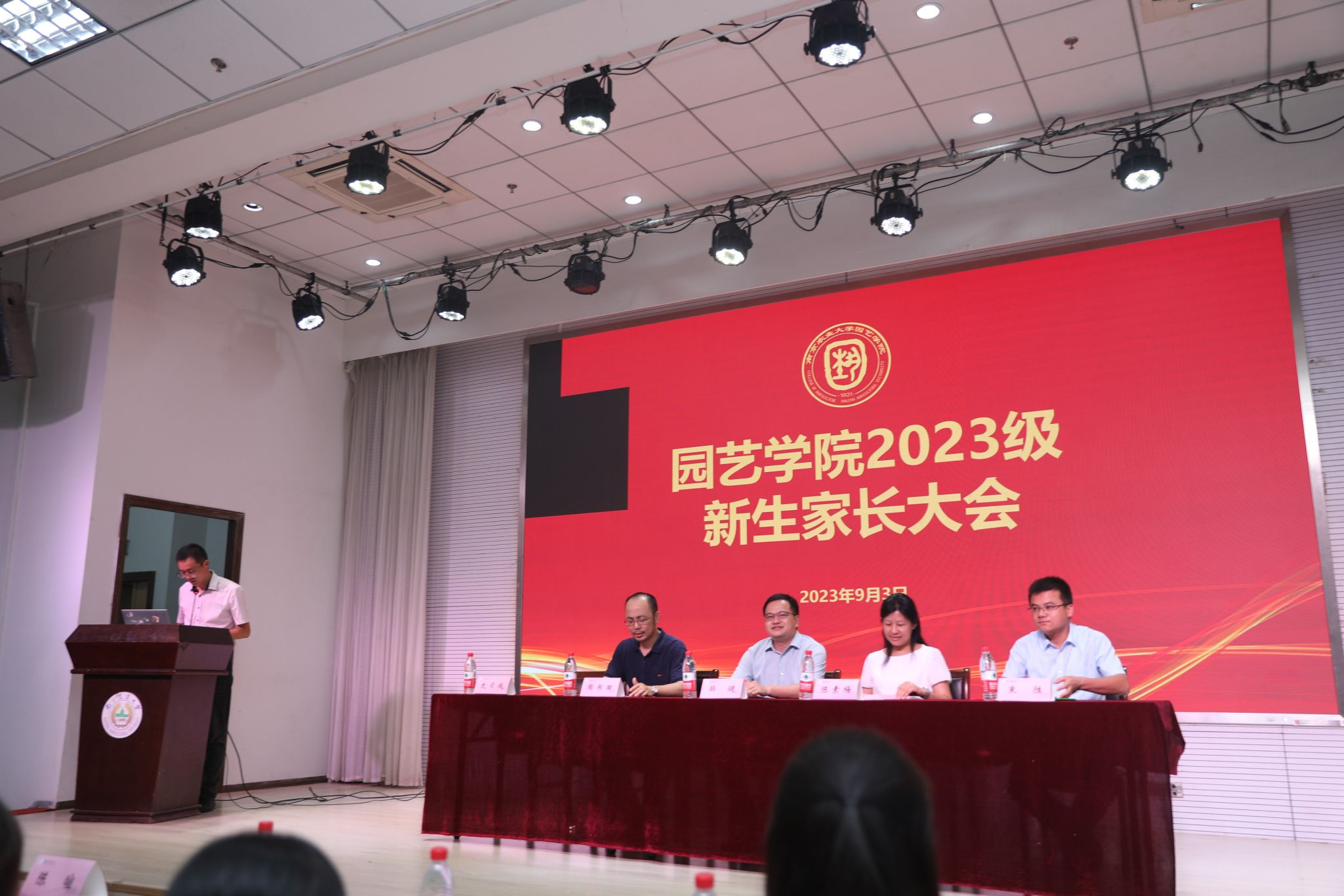 随后,韩健发表了讲话,他首先对新生家长表示了欢迎、祝贺和感谢:欢迎新生与家长来到南农,祝贺新生能够来到南农,感谢家长信任南农。接着他就学院基本情况进行了简要介绍,同时强调学生要制定明确目标,家长要引导学生,培养学生独立的能力,点出家长与学生沟通方式的重要性。希望家长能够积极与学校联合,共同培养学生成长成才。