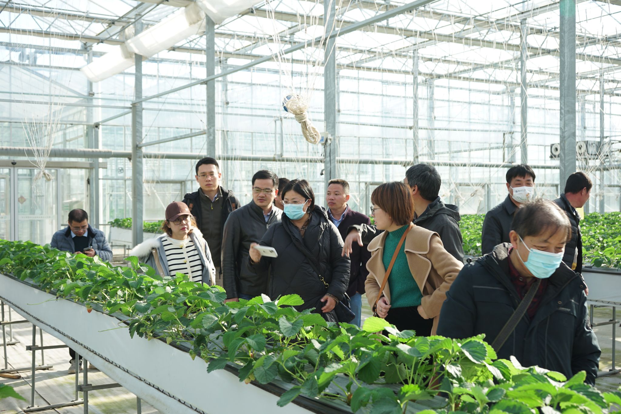 蔬菜学李季教授带领下参观了特菜(黄瓜)轻简化绿色高效重大技术协同推广项目科技示范展示基地,在参观实践中了解轻简化绿色高效栽培技术,促进不同学科教师交流互鉴。