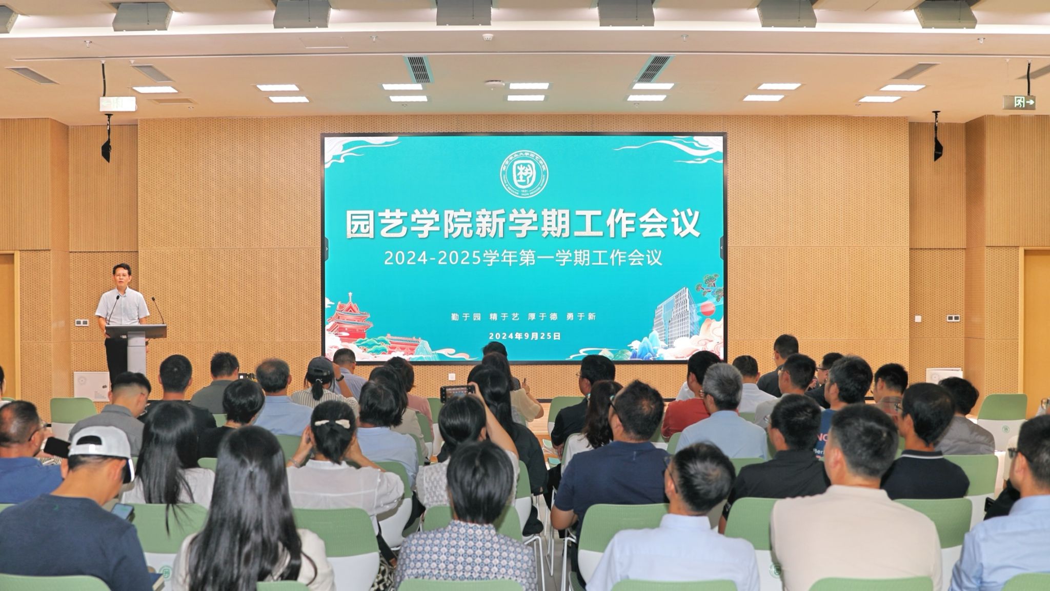 于滨江校区园艺楼146会议室召开2024-2025学年第一学期全体教职工大会,总结上一学期工作成绩,分析研判当前形势,明确新学期目标任务,为努力开创学院高质量发展新局面统一思想、提振精神。全体院领导、教职工参加会议,会议由党委书记姚志友主持。