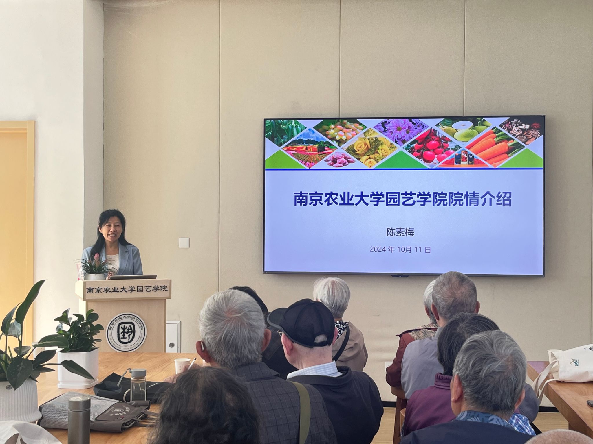 陈素梅向与会老教师报告了学院一年来在学科建设、人才培养、科学研究等方面的发展情况,介绍了学院各方面取得的成绩。