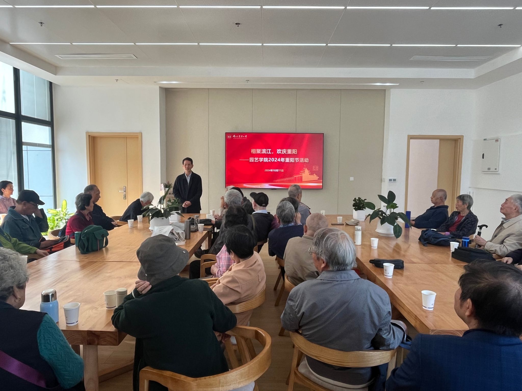 隆重举行2024年重阳节庆祝活动。党委书记姚志友、院长陈素梅、副书记石木舟、副院长张清海、副院长束胜带领学院办公室、辅导员老师,与学院40余位离退休老同志共同庆祝重阳佳节。