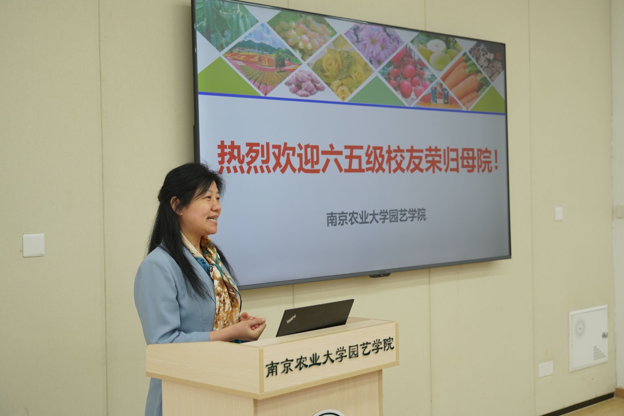 党委书记姚志友主持欢迎仪式,代表学院向校友致以诚挚问候。院长陈素梅教授,从学科建设、科研成果、人才培养等方面全面介绍学院发展现状,并重点展示了园艺学科在服务乡村振兴、推动绿色发展中的突出贡献。