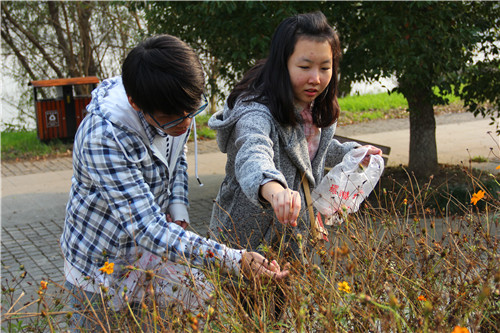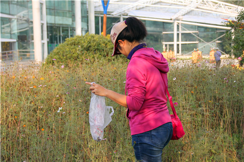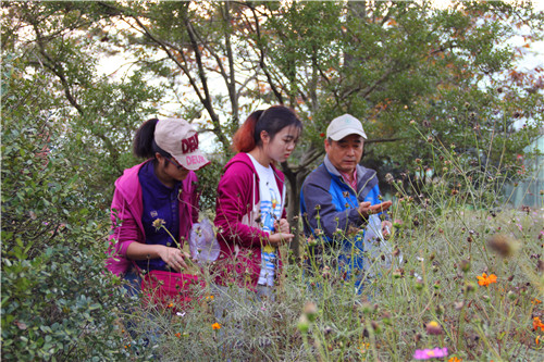 收集菊花和格桑花的种子其实并不是一件困难的事,加上下午的阳光非常好,金色的阳光洒在一片金黄的菊花丛中,是给予秋后最温暖的景色。大队一行人在菊花地中穿行,闻着淡淡菊花香气,一路说说笑笑.反而觉得收集种子是一件十分有趣的事情。