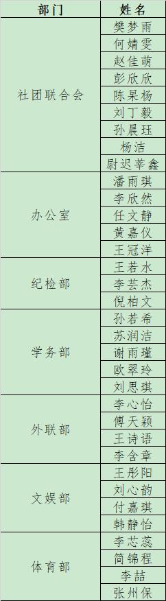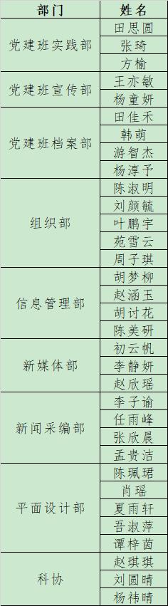 为进一步做好成人有声小说 学生工作,服务广大学生,经个人申请,成人有声小说 第二十一届学生组织各部门公开组织面试后,拟录取田思圆等人为各学生组织部门副部。具体名单公示如下(排名不分先后):