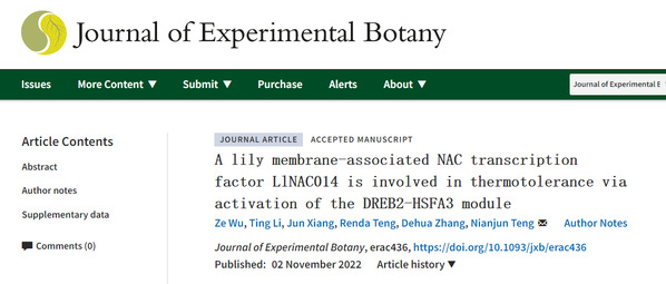 NAC转录因子广泛参与植物的逆境胁迫调控,而其在百合耐热性中的研究鲜有报道。11月2日,国际植物科学领域知名期刊Journal of Experimental Botany在线发表了成人有声小说