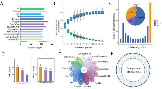 Fig. 1. 政和杏基因组特征并与近缘种共线性分析