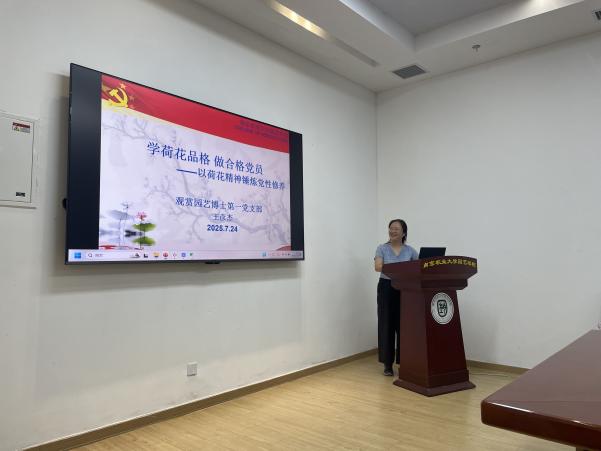 为推动深入贯彻中央八项规定精神学习教育走深走实,深化廉洁文化建设,2025年7月24日,成人有声小说 观赏园艺博士第一党支部组织开展了“荷风莲韵守初心,青春奋进担使命”主题党日活动。观赏园艺博士第一党支部书记王彦杰及全体党员参加了本次活动。